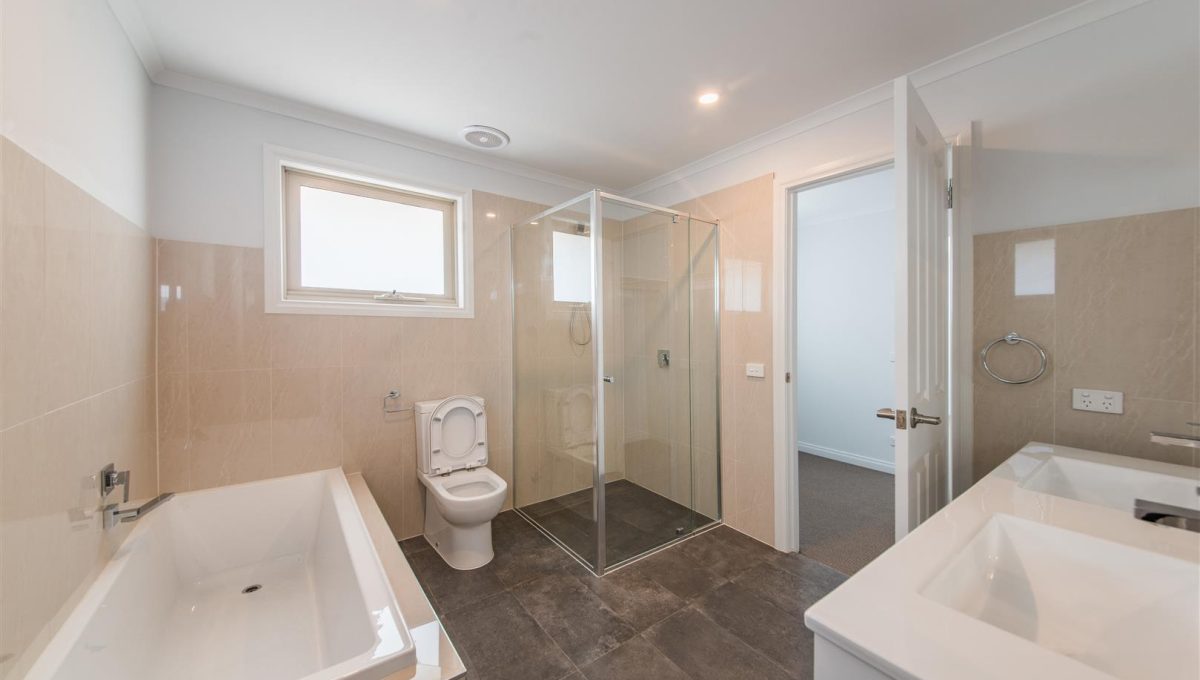 Ascending to the upper level, you’ll discover two incredibly spacious bedrooms. The master bedroom is a true haven, featuring a walk-in robe that dreams are made of. The attached semi-ensuite boasts a double vanity, as well as a separate bath and shower. The residence is also fitted with split air conditioning/heating in the lounge room, ensuring comfort year-round. The property includes a single garage, with additional space at the rear suitable for another vehicle.