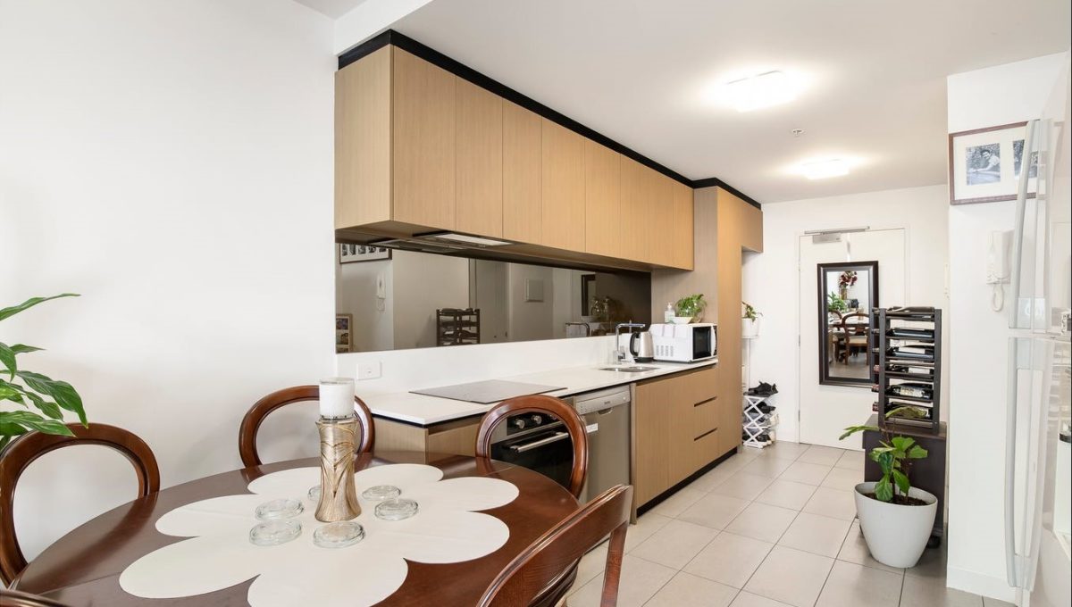Filled with natural light and designed for modern living, the apartment features two spacious bedrooms with built-in robes, kitchen with Caesarstone benchtops, dishwasher and electric cooking. The open-plan living and dining area flows seamlessly to a private balcony with breathtaking city views. A modern central bathroom with integrated laundry adds everyday convenience, and a secure car space ensures complete peace of mind.